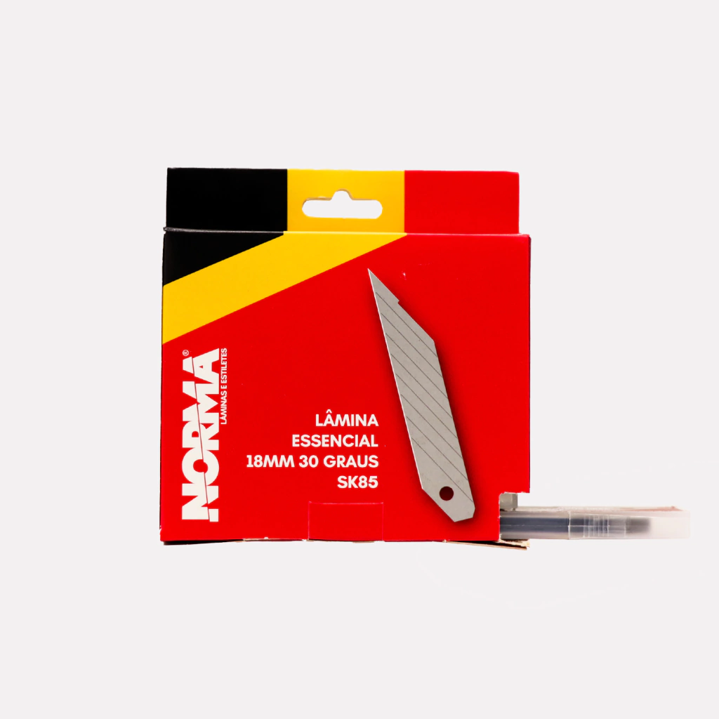 A Lâmina 18mm 30 Graus SK85 é a escolha ideal para quem busca precisão e durabilidade. Fabricada em aço carbono JIS G 4401:2022-SK85 (SK5), esta lâmina larga e segmentada possui um ângulo de corte de 30 graus, proporcionando cortes limpos e exatos. Com afiação em ângulo único, é especialmente recomendada para trabalhos detalhados em materiais como papel e plástico, sendo uma ferramenta indispensável para escritórios e profissionais de comunicação visual. Além de sua alta qualidade, a Lâmina 18mm 30 Graus SK85 destaca-se pela sua versatilidade e eficiência. Seja para projetos de design, artesanato ou tarefas cotidianas no escritório, esta lâmina oferece o desempenho necessário para resultados profissionais. Invista na Lâmina 18mm 30 Graus SK85 e eleve o padrão de seus trabalhos com uma ferramenta confiável e de alta precisão