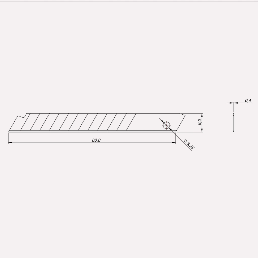 Esta lâmina profissional 9mm é fabricada em aço carbono CS100. Possui treze segmentos e afiação em dois ângulos. Trata-se de uma lâmina estreita, recomendada para trabalhos pesados, em materiais espessos como borracha, carpete, couro, filme e piso vinílico. É indicada para a indústria.